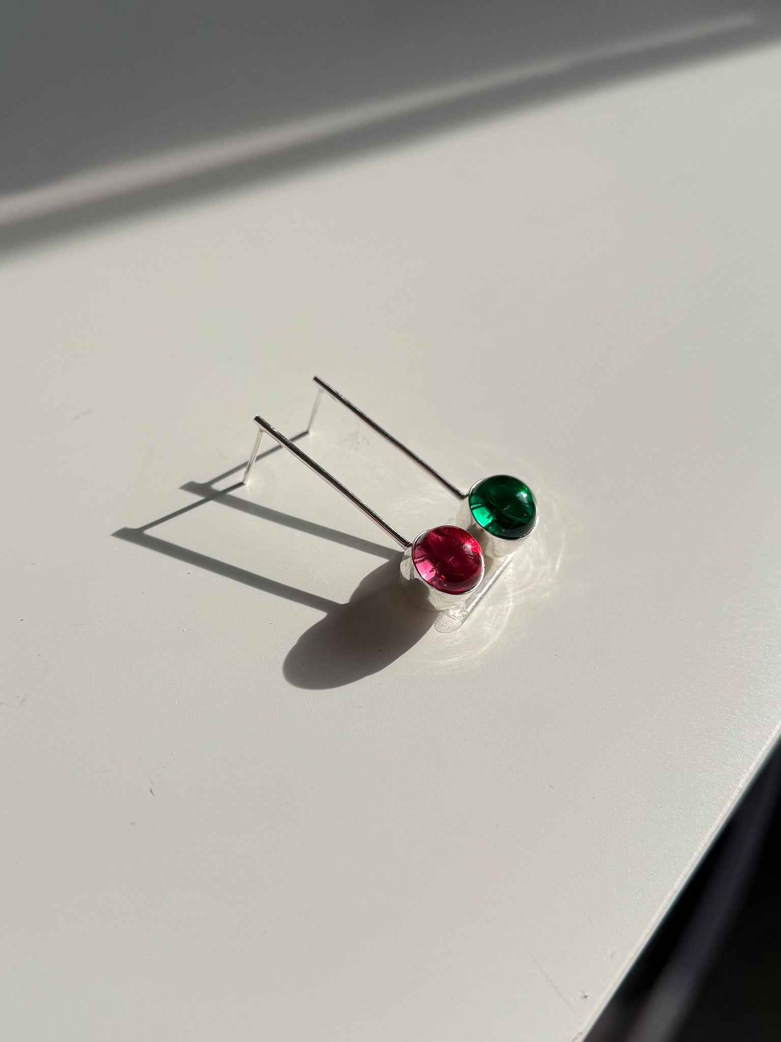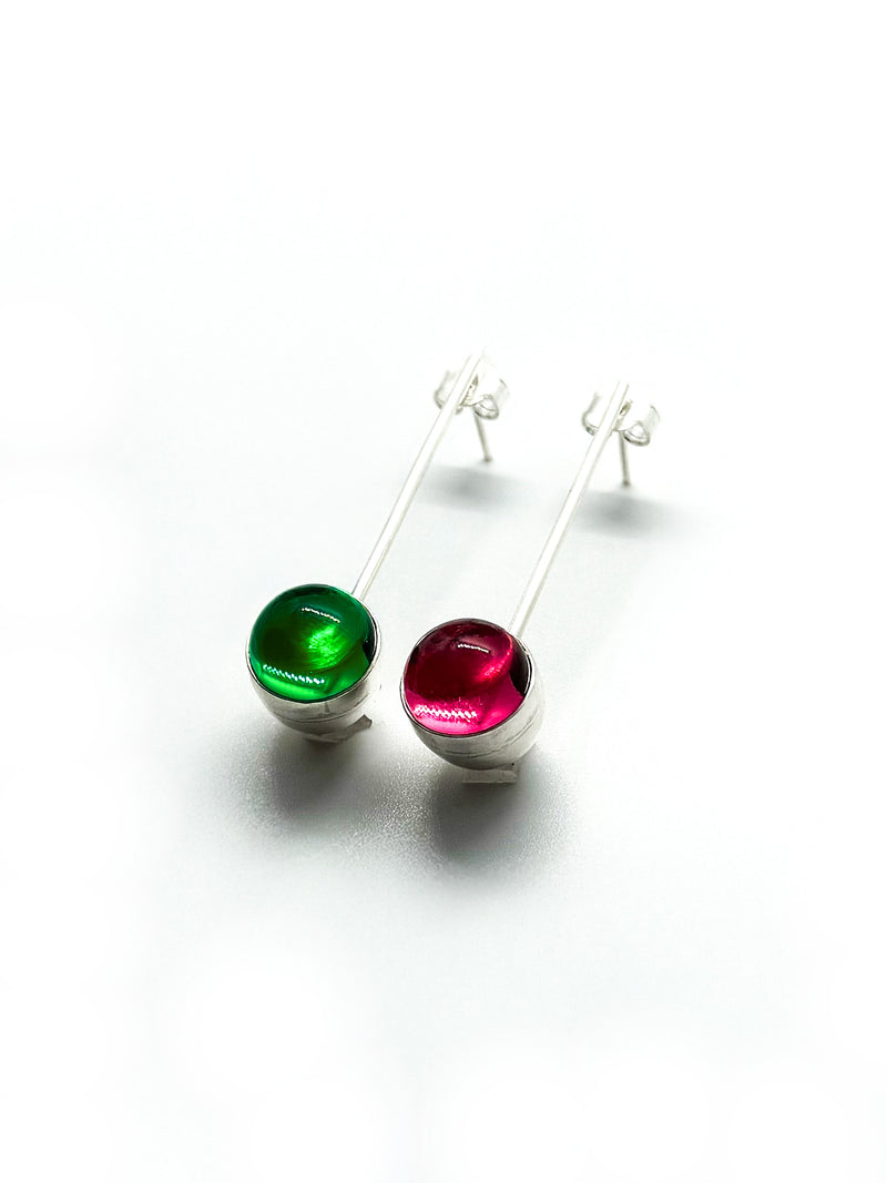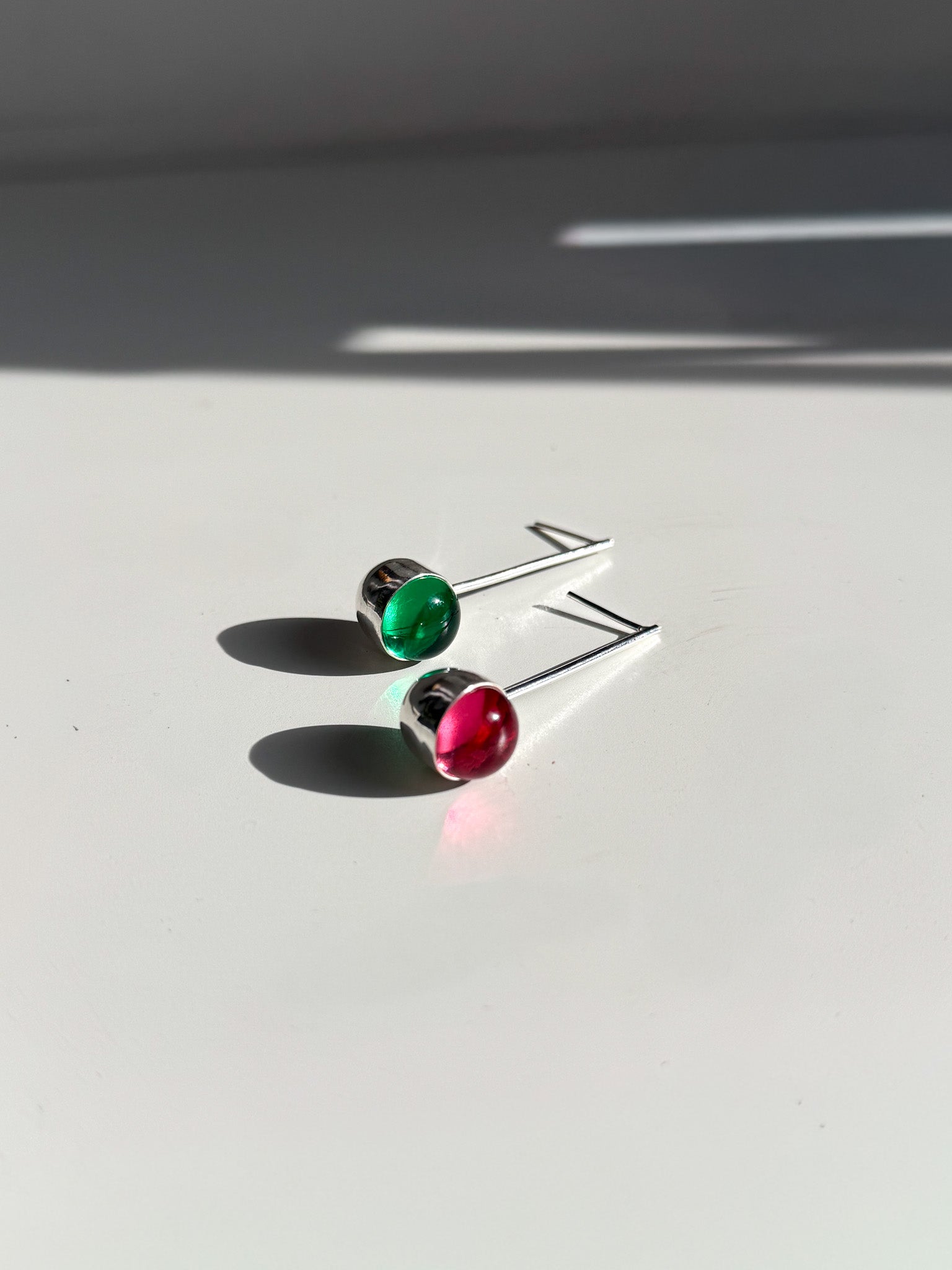 Each piece features a smooth silver dome that holds a glass accent , you can choose the color that fits your style.