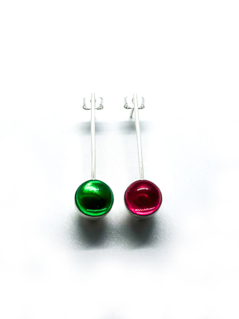 Sterling silver and glass come together in these half-sphere earrings, handmade one by one in my studio.