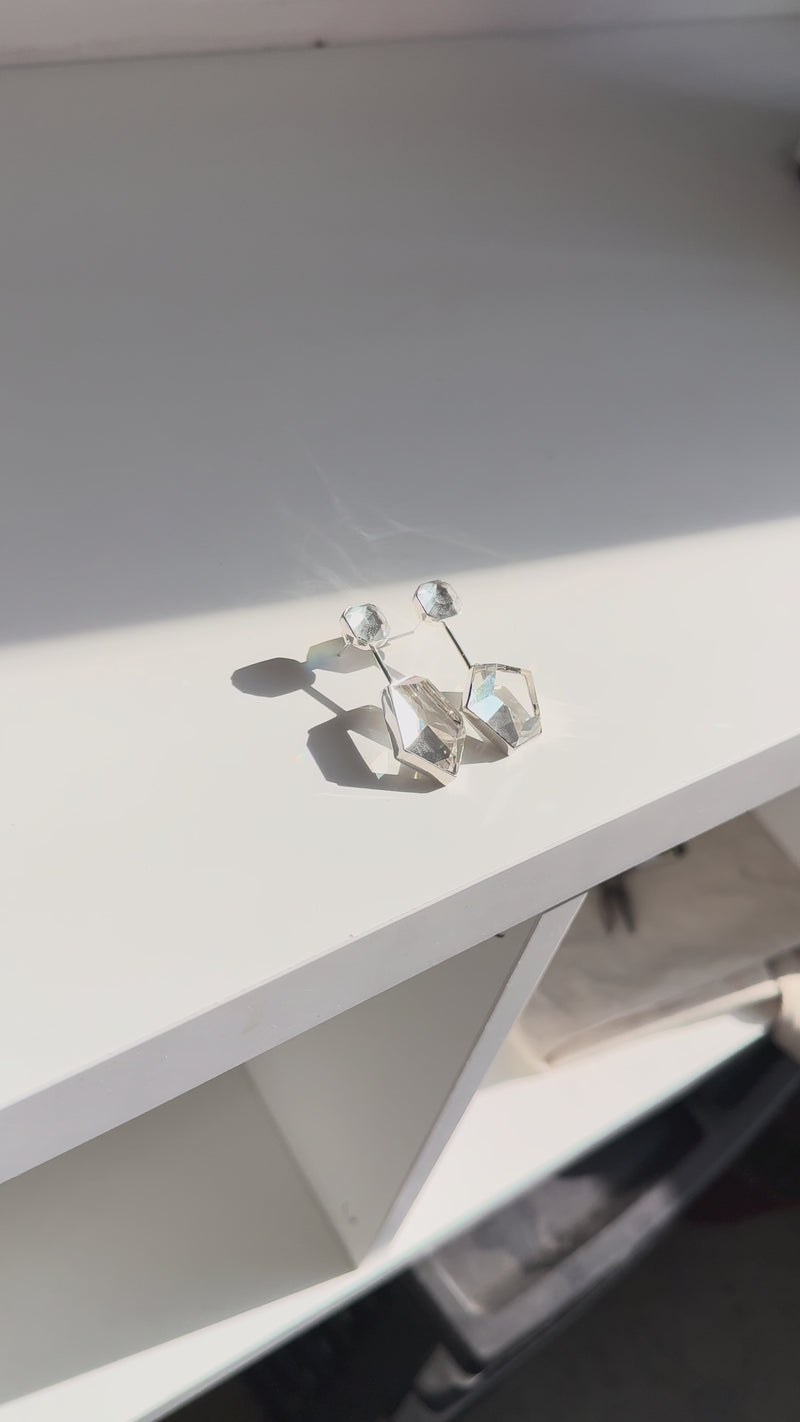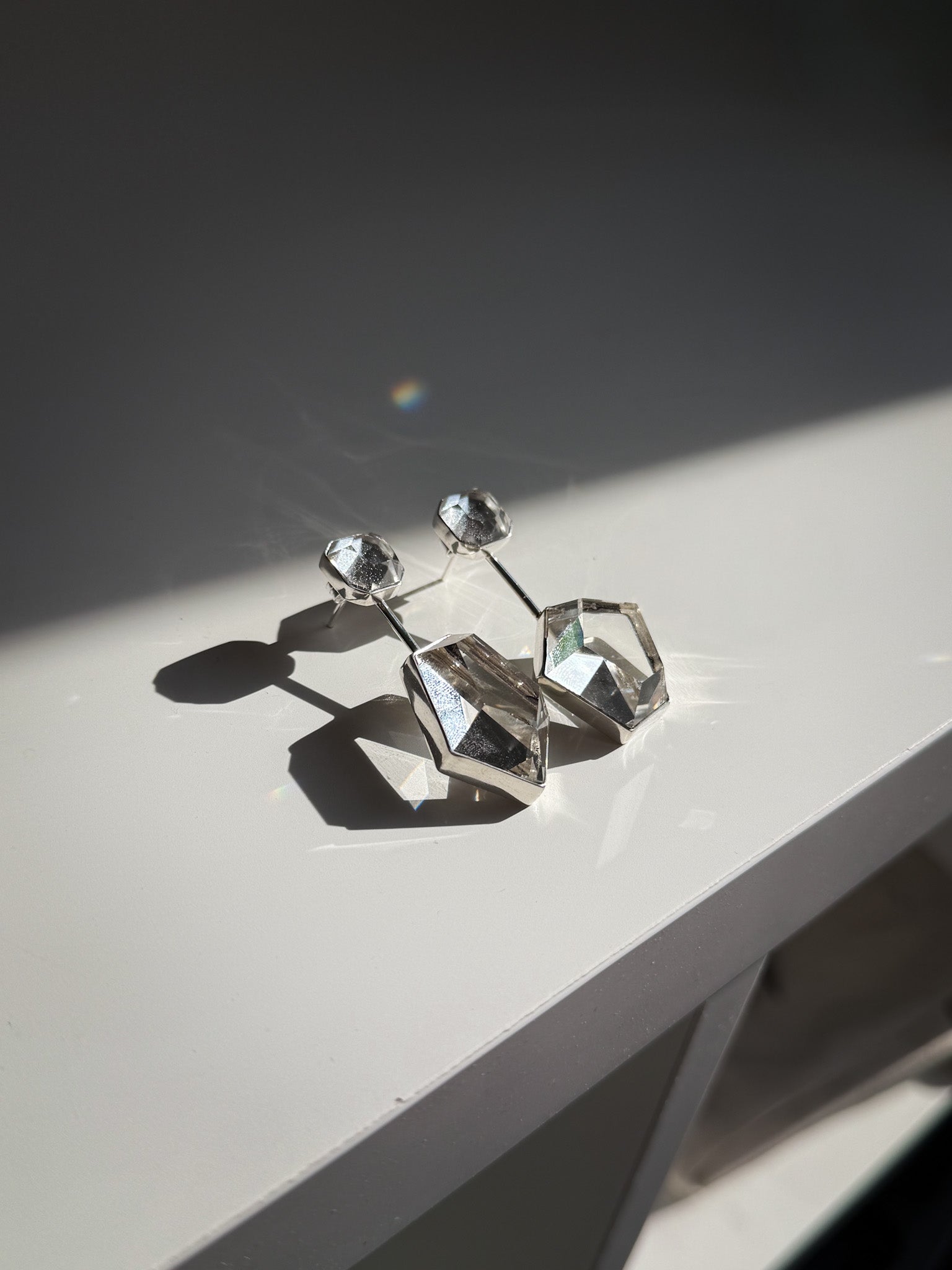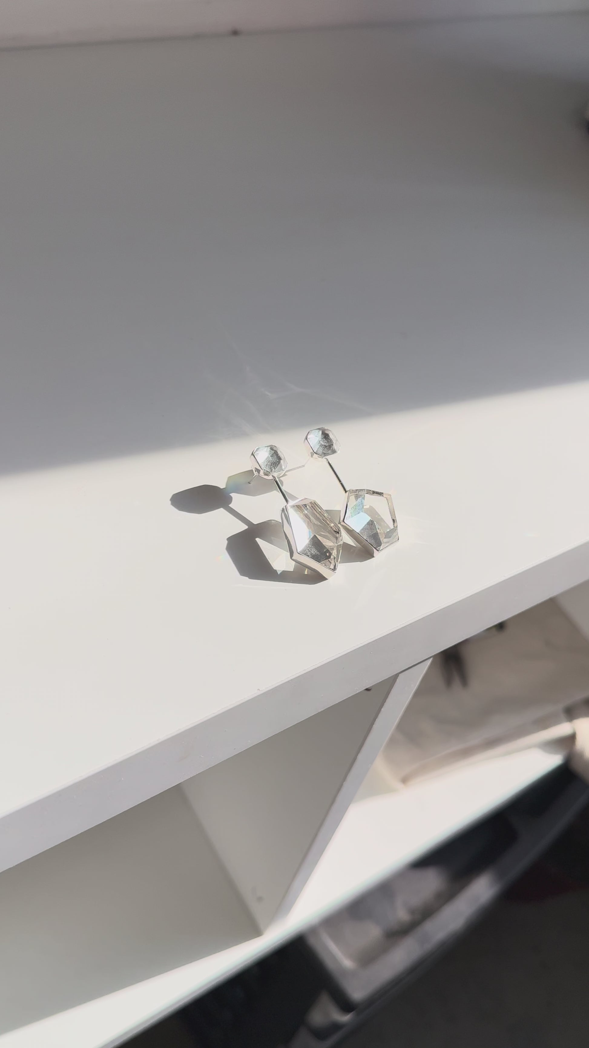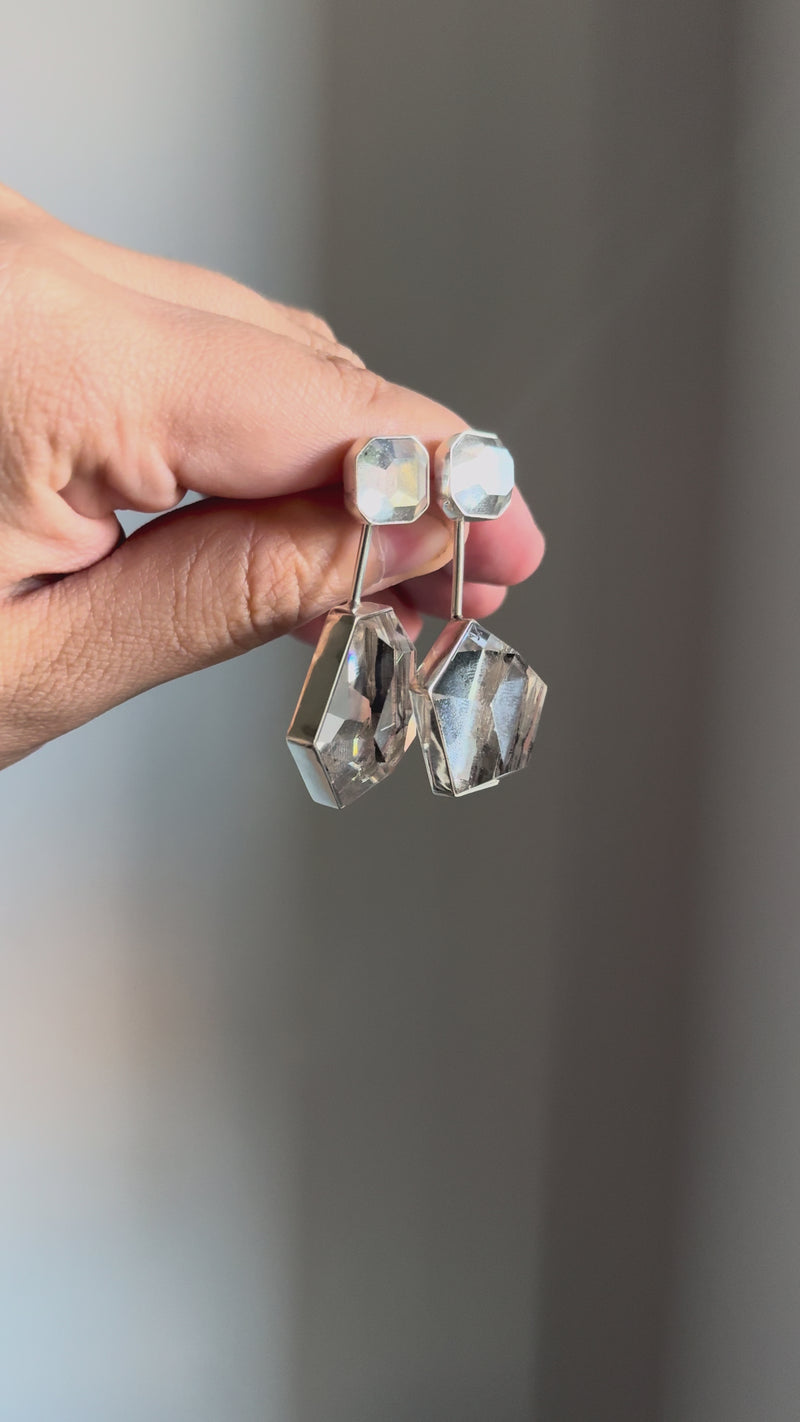 Handcrafted in sterling silver and glass, these earrings are a playful mix of color and shine.