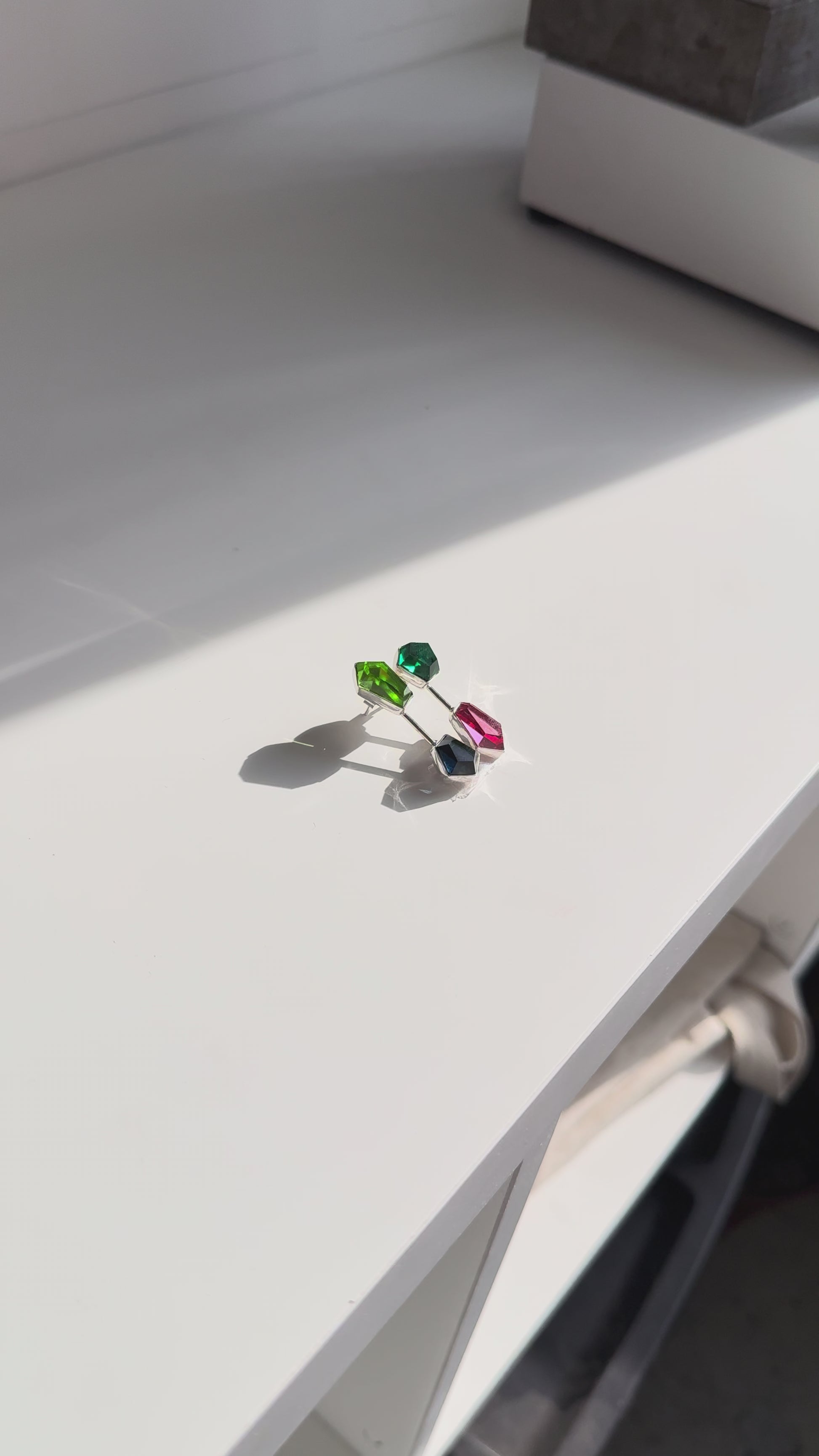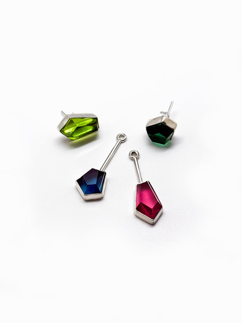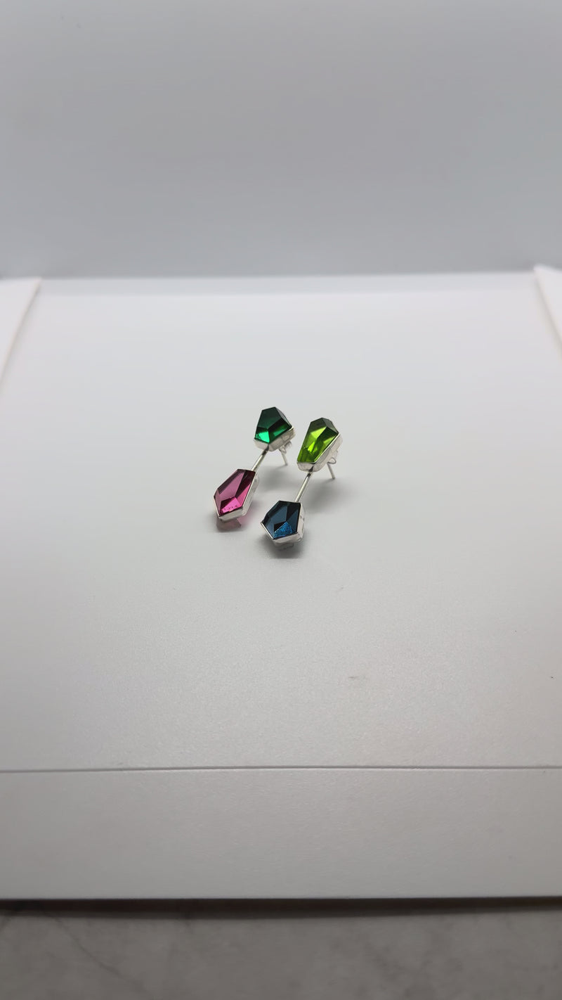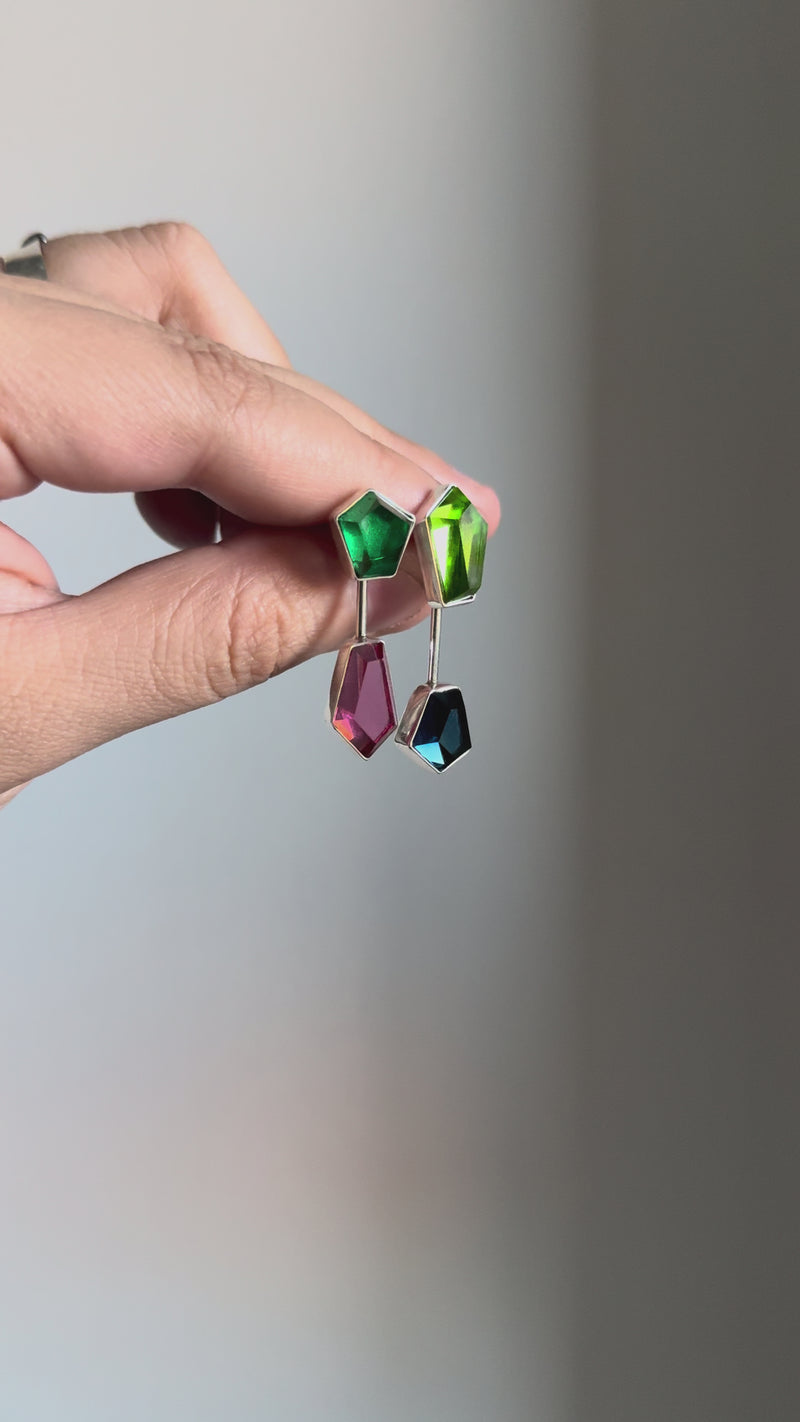 Handcrafted in sterling silver and glass, these earrings are a playful mix of color and shine.