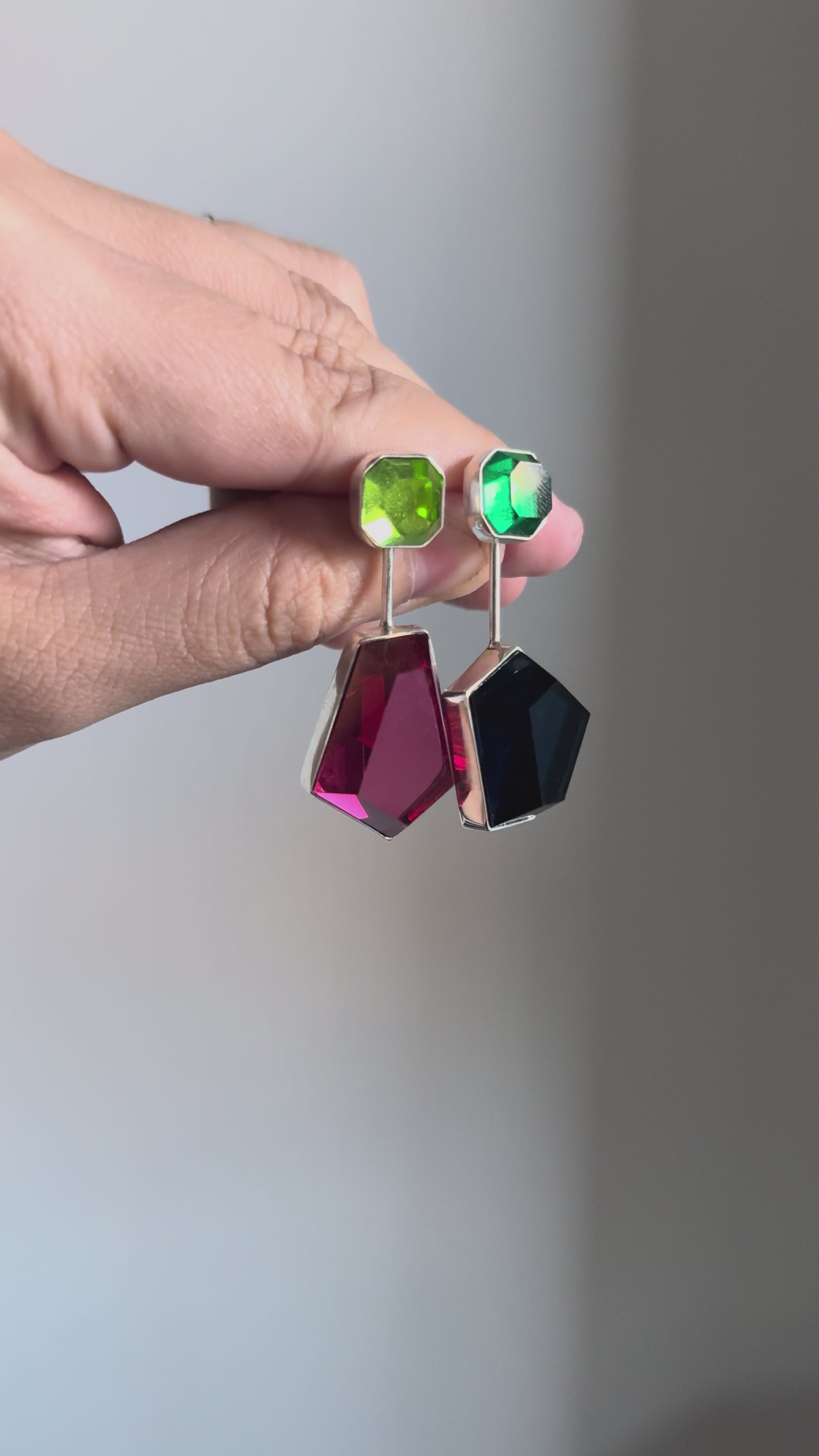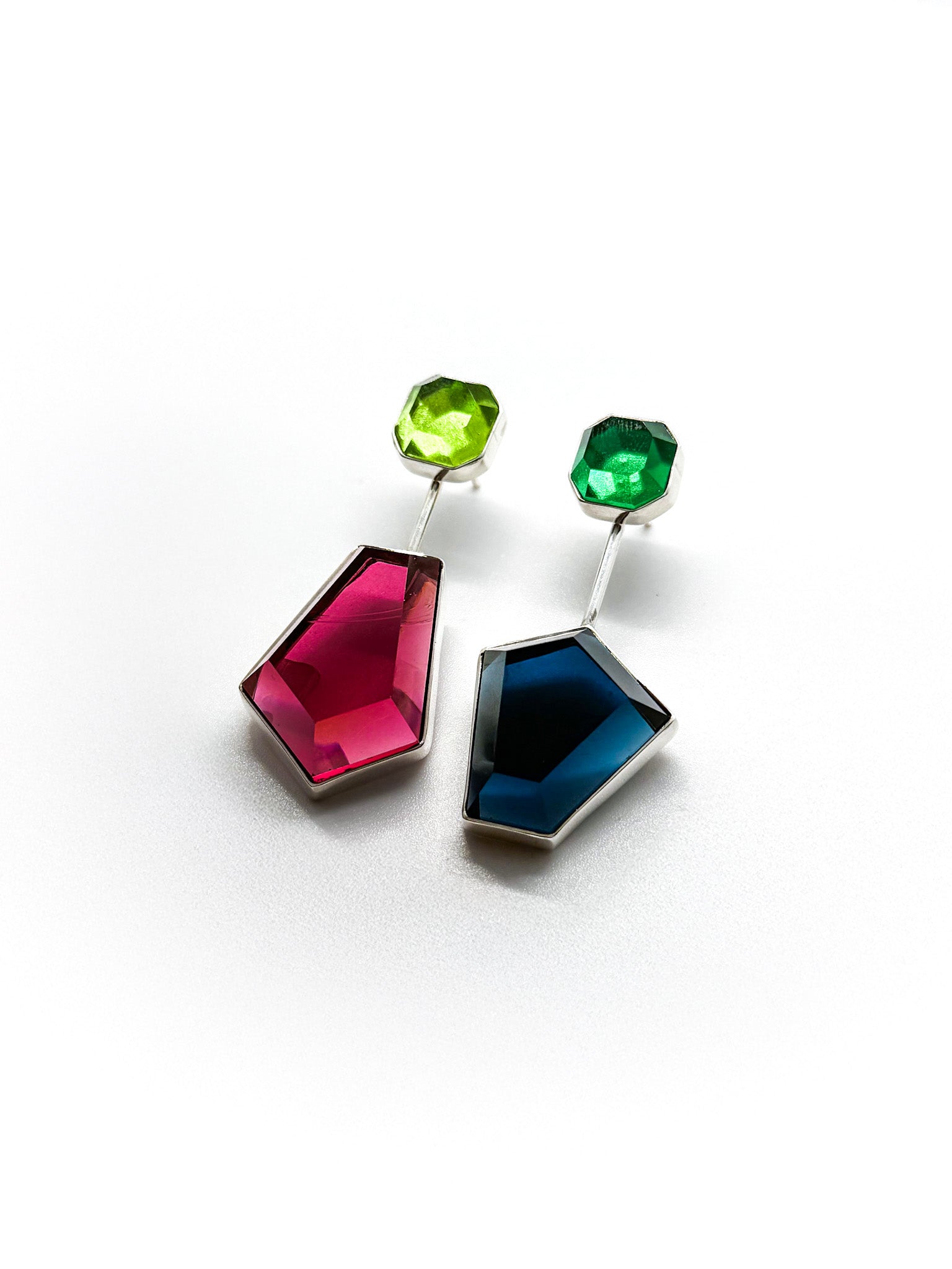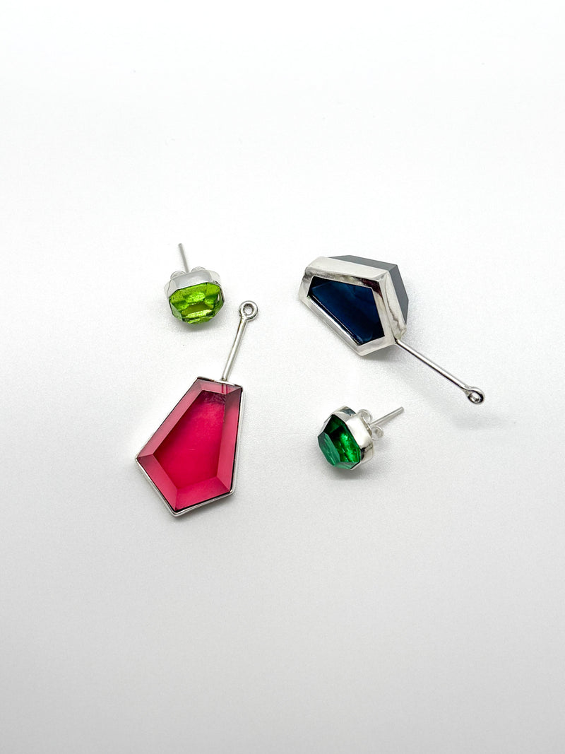 Handcrafted in sterling silver and glass, these earrings are a playful mix of color and shine.