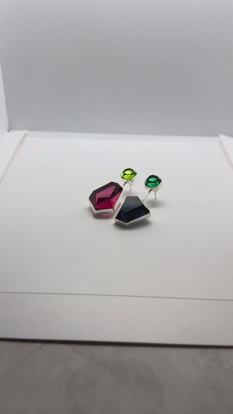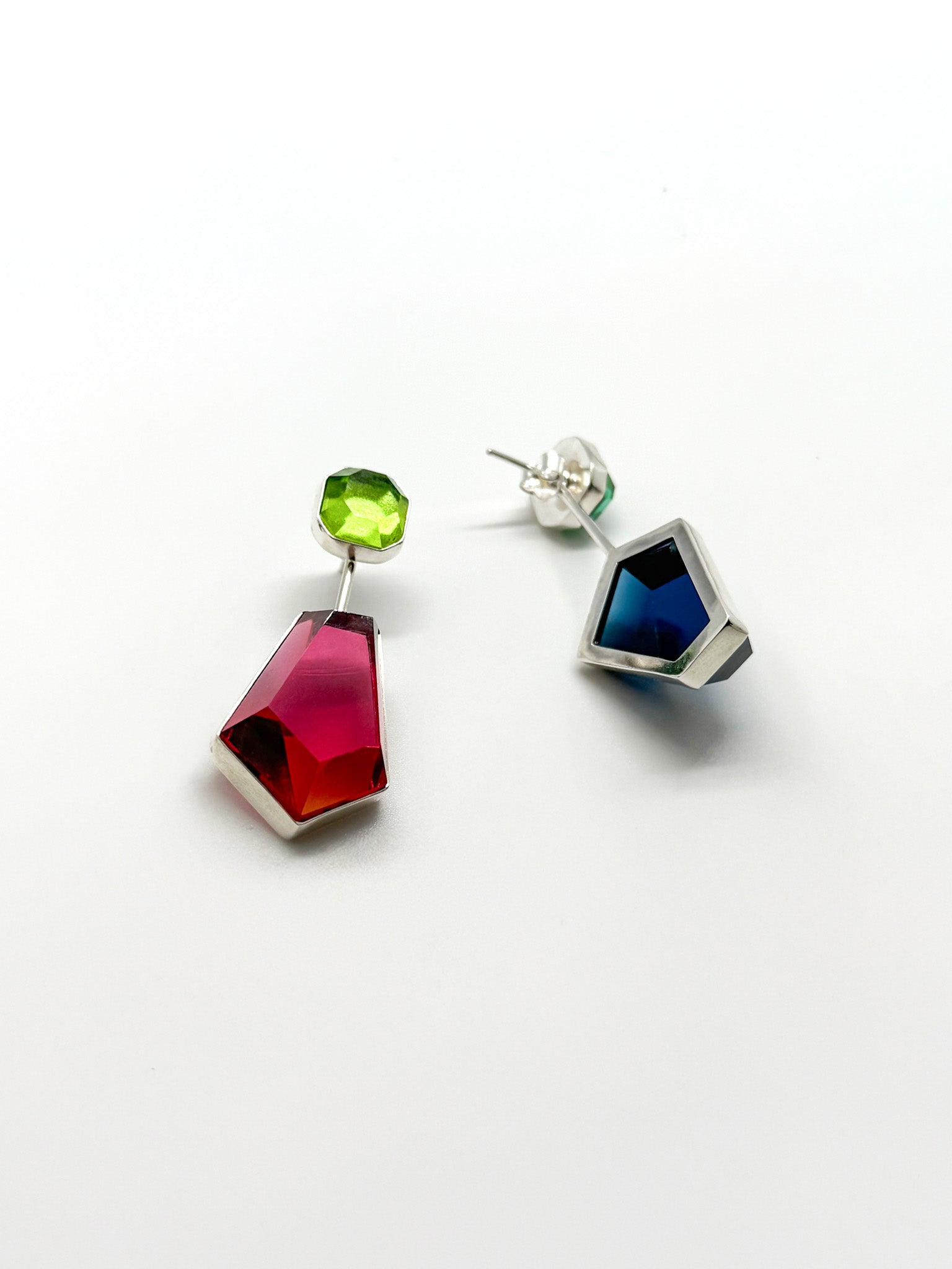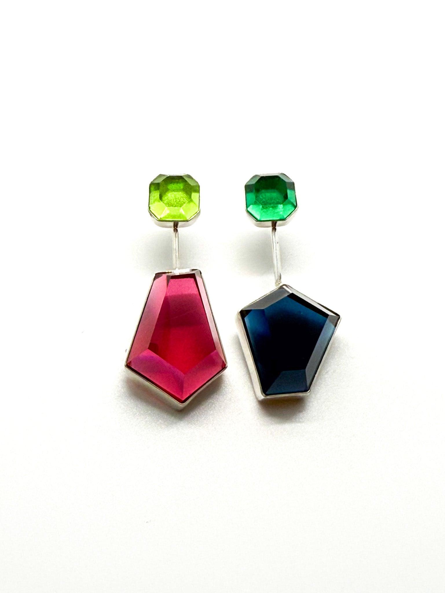 Handcrafted in sterling silver and glass, these earrings are a playful mix of color and shine.